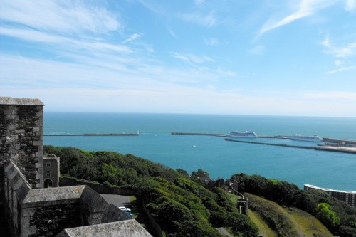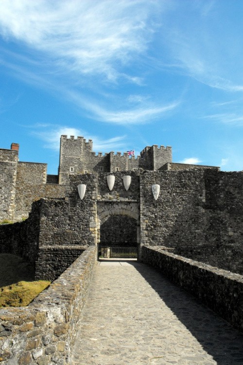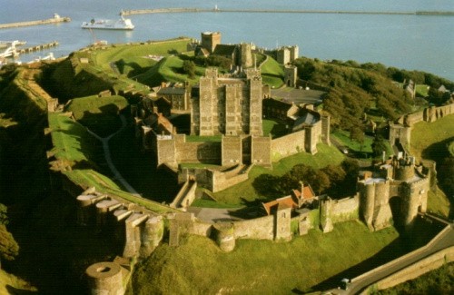 Dover Castle umiejscowiony na wysokim klifie w strategicznie położonym miejscu gdzie odległość pomiędzy wyspami brytyjskimi i Europą jest najmniejsza. Średniowieczny zamek i największa twierdza w całym kraju. Zamek w obecnej postaci został wniesiony w czasie panowania Henryka II, z tego okresu pochodzi centralny, kamienny donżon (keep), który pełnił funkcje zarówno mieszkalne jak i obronne. Po śmierci Henryka budowę kontynuowali jego synowie - Ryszard Lwie Serce i Jan bez Ziemi.