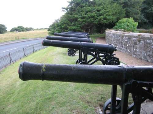 Tutaj także możemy oglądnąć stare armaty stojące przed zamkowym murem tuż obok szosy.