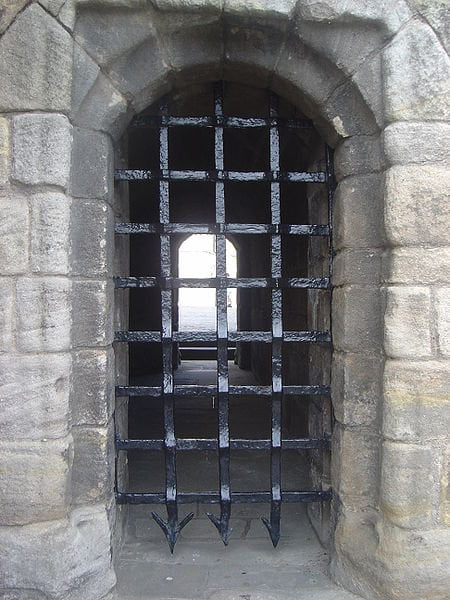 W budownictwie - krata drewniana, najczęściej okuta żelazem zamykająca wejście przez bramę w murze obronnym lub zamku.
