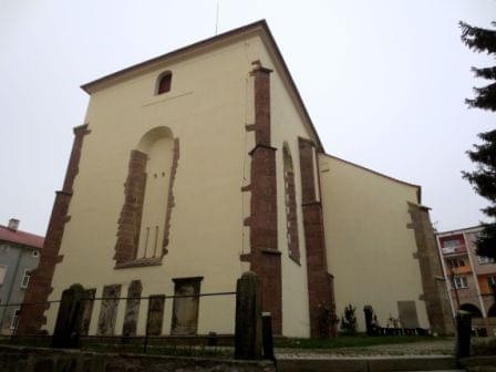 Zbudowany w 3 ćw. XIII wieku z łamanego kamienia i ciosów piaskowca na planie krzyża składał się z dwuprzęsłowej prostokątnej nawy, dwuprzęsłowego prezbiterium oraz trójprzęsłowego transeptu. Kościół w całości był sklepiony. Z pierwotnego założenia zachowały się mury zewnętrzne wraz ze ścianą tęczową i sklepienie krzyżowo-żebrowe z bogato zdobionymi służkami. Pierwotne są również okna w prezbiterium, z tym, że okno wschodnie z reliktem maswerku jest zamurowane, a także rozeta w ścianie zachodniej. W kościele zachowały się dwa portale. Prosty ostrołukowy portal z prezbiterium do zakrystii jest współczesny budowie części prezbiterialnej (pocz. 3 ćw. XIII wieku), natomiast portal zachodni datowany jest na 4 ćw. XIII wieku. Kościół obiega kamienny cokół.