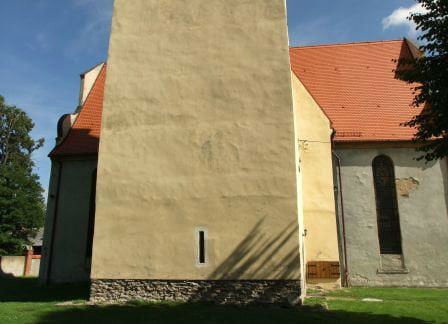 Zbudowany w IV ćw. XIII wieku z kamienia łamanego. Z tego założenia do naszych czasów dotrwała tylko wieża z wtórnie wmurowanym portalem z kolumienkami. Ponieważ wieża nie miała osobnego wejścia, a w jej murach odnajdziemy kilka szczelinowych okienek mogła spełniać również funkcje obronne. (fot. wrzesień 2012)