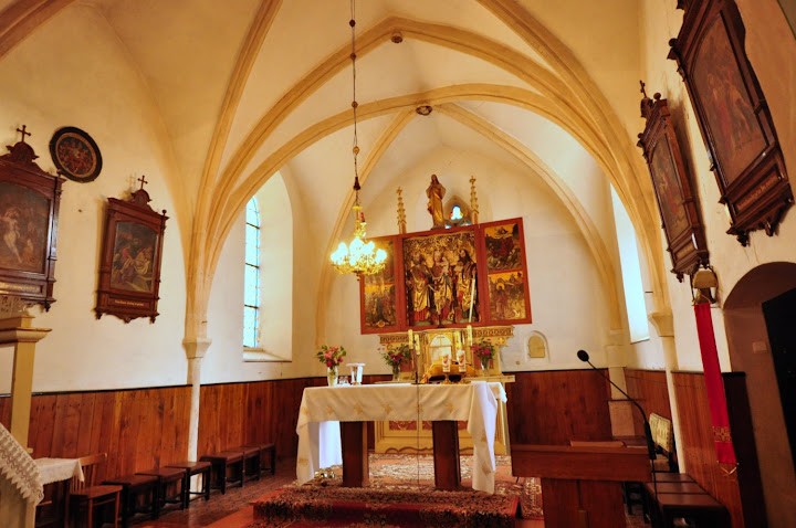Nam udało się wbić do środka. Musieliśmy co prawda odczekać aż msza się skończy i później krzywo patrzyli tubylcy bo chcieli już kościół zamykać. Więc dokumentacja niezbyt dokładna. Ale oprócz porządnego ołtarza chyba nic ciekawego.