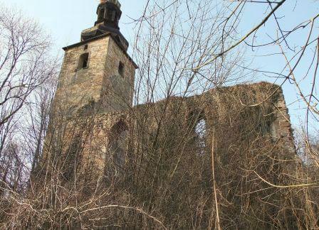 Ruina kościoła Najświętszej Marii Panny. Zabytek o tyle ciekawy, że ruiny romańskiego kościoła to rzecz w Polsce rzadka.