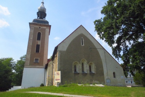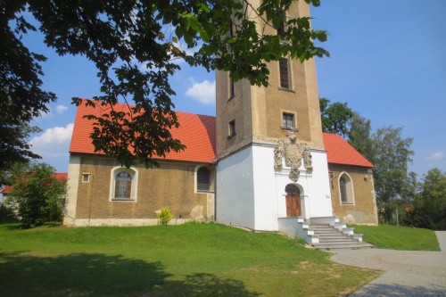Kościół Podwyższenia Krzyża Świętego. Romański, zbudowany w 2 ćw. XIII wieku z łamanego kamienia i ciosów w narożach, składał się z prostokątnej nawy i prezbiterium zakończonego ścianą prostą. Z pierwotnego założenia zachowane mury zewnętrzne i ściana tęczowa. We wschodniej ścianie prezbiterium triada romańskich okien, w południowej ścianie prezbiterium skromny portal. Na elewacji zewnętrznej kamienne haki, prawdopodobnie służące do mocowania podcieni. Kościół był zamknięty i wyglądał na nieużywany. (lipiec 2020)