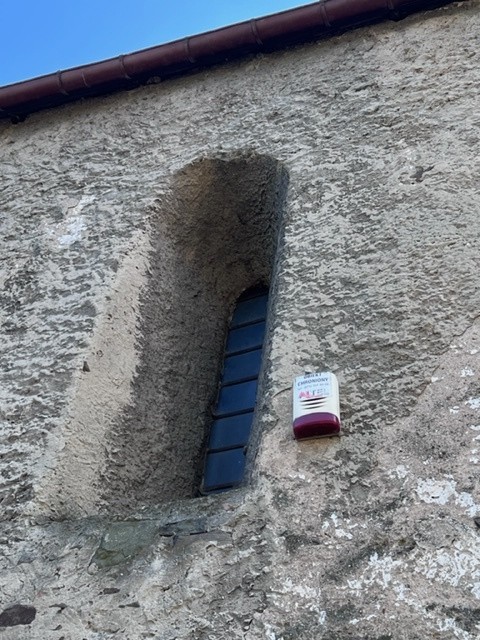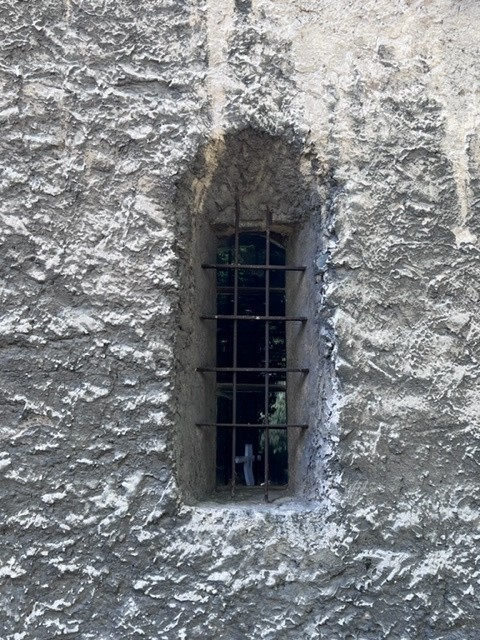 Okno w północnej ścianie prezbiterium, zakrystia jest późnośredniowieczna