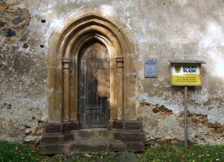 Kościół jest nieużywany, stale zamknięty i nie można go zobaczyć wewnątrz, a szkoda, bo to jeden z ciekawszych tego typu obiektów na DS. Szpanerska tabliczka obok portalu to trochę mało, żeby uratować go od zapomnienia…(fot. październik 2014)