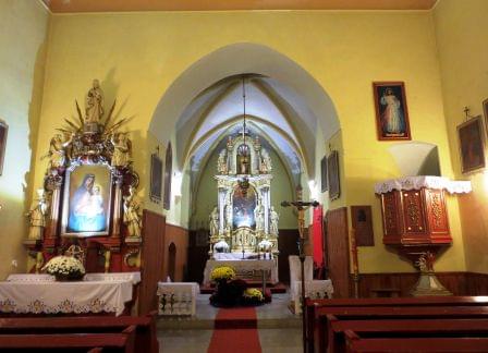 Zbudowany w 4 ćw. XIII wieku z łamanego kamienia składał się z prostokątnej nawy, dwuprzęsłowego sklepionego prezbiterium i zakrystii po stronie północnej. Z pierwotnego założenia przetrwały mury obwodowe ze ścianą tęczową, sklepienie prezbiterium krzyżowo-żebrowe z geometrycznymi wspornikami oraz portal południowy do nawy. Bardzo miły i uczynny ksiądz nie robi żadnych problemów ze zdjęciami (fot. październik 2014-2015)