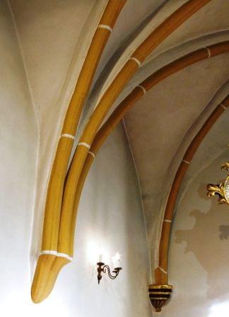 Zbudowany w 4 ćw. XIII wieku z łamanego kamienia i ciosów w narożach składał się z prostokątnej nawy i dwuprzęsłowego sklepionego prezbiterium. Z pierwotnego założenia przetrwały mury obwodowe ze ścianą tęczową, sklepienie prezbiterium krzyżowo-żebrowe z geometrycznymi wspornikami oraz portal południowy do nawy - co ciekawe wtórnie złożony z dwóch innych portali. Pierwotne okna poszerzone bądź przemurowane. Bardzo miły i uczynny ksiądz nie robi żadnych problemów ze zdjęciami (fot. październik 2014-2015)