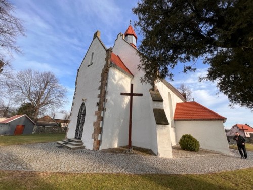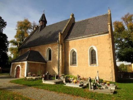 Zbudowany w 4 ćw. XIII wieku z łamanego kamienia i ciosów w narożach składał się z prostokątnej nawy, dwuprzęsłowego sklepionego prezbiterium, zakrystii po stronie północnej i wieży zachodniej otwartej na nawę, obniżonej do wysokości nawy w czasach nowożytnych. Z pierwotnego założenia przetrwały mury obwodowe ze ścianą tęczową, sklepienie prezbiterium krzyżowo-żebrowe z geometrycznymi wspornikami oraz portal południowy do nawy. Pierwotne okna poszerzone bądź przemurowane. Kościół był zamknięty. (fot. październik 2014)