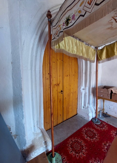Portal, nadal skrzętnie ukryty pod/za baldachimem