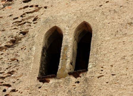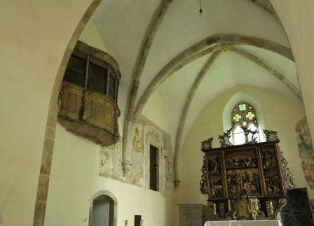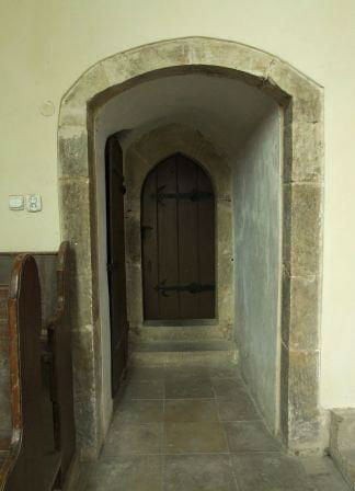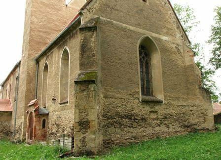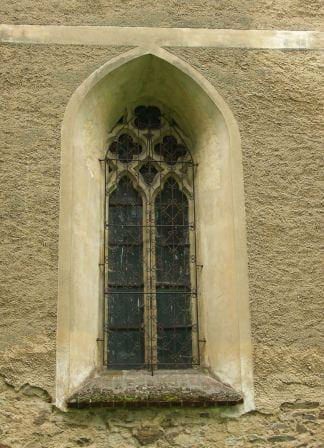 Zachowane gotyckie okno wschodnie z maswerkiem i okienka w wieży, w tym w jednym z biforiów fragment kolumny. Zachował się również portal z prezbiterium do zakrystii, a także zamurowany południowy portal do nawy, który jest widoczny tylko od strony kruchty pełniącej rolę składzika na drewno (jak byłem, to kruchta była otwarta - brak zamka).