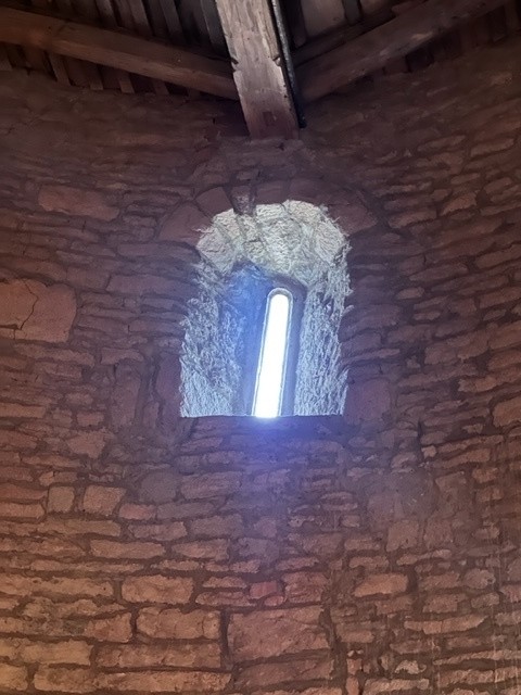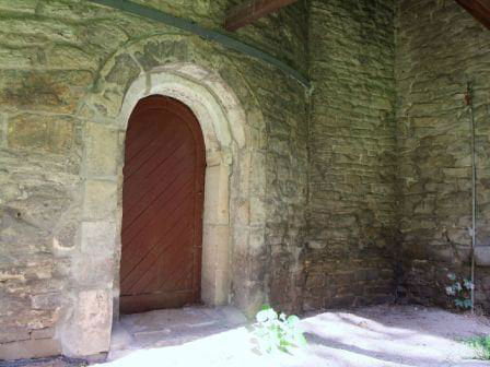 Z pierwotnego założenia zachowały się mury nawy do wys. ok. 6,5 metra, portal oraz 3 okienka (czwarte jest zamurowane). (fot. wrzesień 2012)