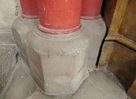 Apsyda krypty. Widoczna złożona kolumna romańska i częściowo zwornik stalaktytowy