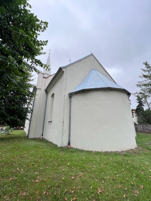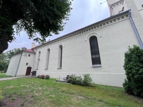 W obrębie budowli zachowane są relikty światyni romańskiej. Prezbiterium nakryte sklepieniem krzyżowym, zakończone półkolistą apsydą z konchą oraz fragmenty murów wschodniej części nawy datuje się przed 1217 r. Zachodnia część kościoła z nawą nakrytą stropem oraz wieża pochodzą z czasu gruntownej przebudowy XIX-wiecznej. Kościół jest orientowany, mury i sklepienie prezbiterium wybudowano z kamienia. Korpus kościoła nakryty jest dachem dwuspadowym. Wieża w przyziemiu jest czworoboczna, wyżej - ośmioboczna, nakryta strzelistym hełmem. Elewacje zwieńczone zostały fryzem arkadkowym.