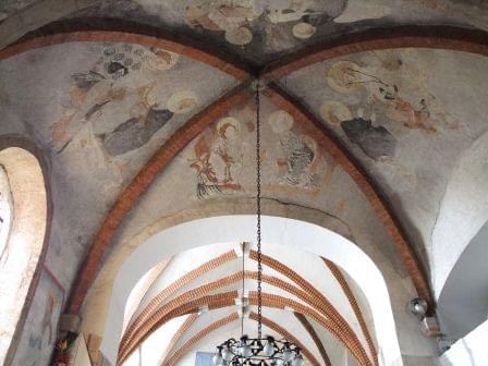 Wewnątrz prezbiterium fragmenty fresków z przełomu XIII/XIV wieku.