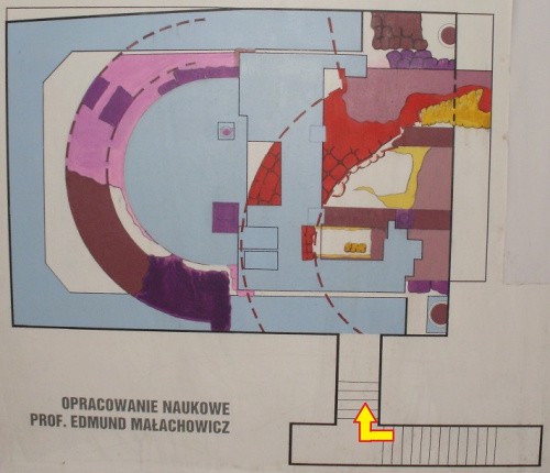 usilna próba wyciśnięcia czegokolwiek. To, co widać, to zapewne łuk apsydy tzw. pierwszej katedry romańskiej z 2 poł. XI w. - czerwony na planiku krypty i zielony na planiku katedry na planszy poniżej