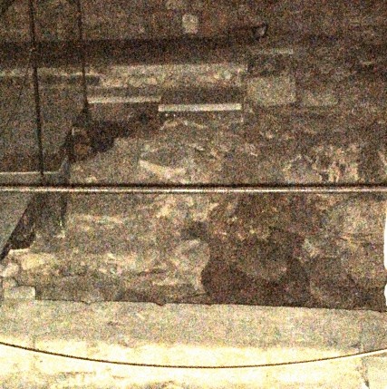 Planik krypty - zaznaczyłem miejsce z którego zrobiłem zdjęcia (na tym zakręcie jest krata)