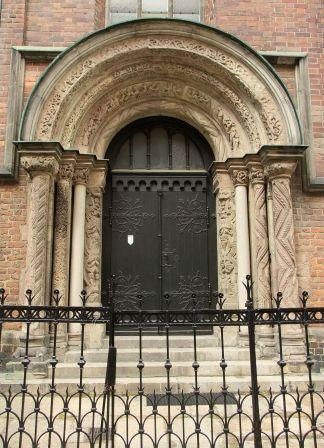 W 1546 roku przeniesiono tu romański portal główny z XII wieku z wyburzonego kościoła opackiego na Ołbinie i wmurowano w elewację południową.