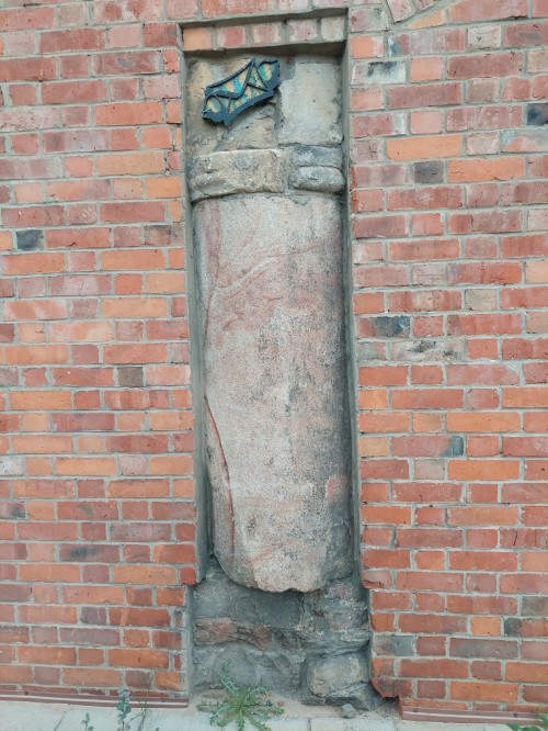 Wtórnie wmurowana, skąd pochodzi - nie wiadomo.