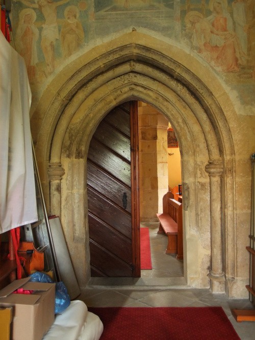 Kościół Wniebowzięcia NMP. Romański, zbudowany w 2 ćw. XIII wieku z ciosów piaskowca składał się z prostokątnej nawy i sklepionego prezbiterium zakończonego apsydą. Z pierwotnego założenia zachowane mury zewnętrzne (niestety otynkowane), łuk tęczowy, sklepienie krzyżowo-żebrowe prezbiterium ze służkami oraz 2 portale - zachodni i północny do nawy (obecnie w kruchcie - składziku). W północnej ścianie nawy 2 zamurowane okna widoczne tylko od wewnątrz. Przy szczytach kamienne wsporniki. Nie było problemów ze zdjęciami (lipiec 2020)