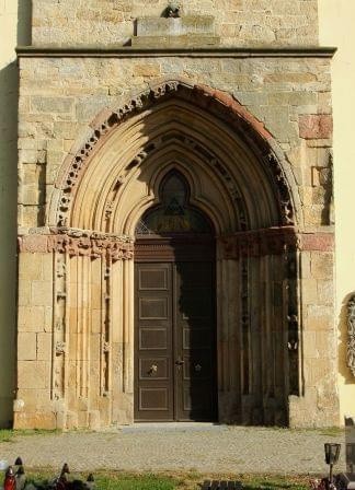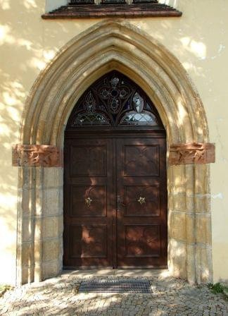 Zbudowany w 3 ćw. XIII weku z ciosów piaskowca składał się z prostokątnej nawy i prezbiterium o nieznanym kształcie. Z tego założenia do czasów współczesnych przetrwały mury nawy wraz z dwoma ostrołukowymi portalami wykonanymi z ciosów piaskowca w 2 kolorach. Portale nawiązują formą do portalu kościoła w Lwówku Śląskim (ok.1260), w starszej literaturze uznawane za XIV-wieczne. Obecnie portale są bardzo zniszczone. (fot. październik 2014)