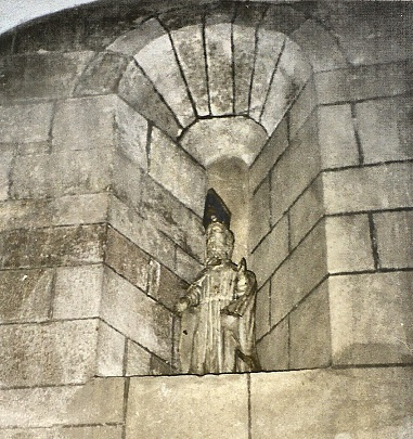 Górny, północny pilaster empory - ten z zajączkiem. Nie do końca wiadomo co właściwie podtrzymywał: drewniany lub murowany parapet (ale brak jego śladów), zamierzoną, ale nie zrealizowaną ścianę przeźroczową...(?)
