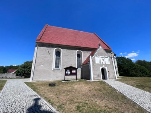 We wsi znajduje się świątynia romańska z XIII wieku otoczona murem (zbudownym w 1882 roku z kamienia polnego i częściowo z cegły). Przebudowywana pod koniec średniowiecza. W 1654 roku dostawiono kruchtę. prz kosciele jest prostokątna dzwonnica z XV wieku, zbudowana z kamienia, usytuowana w linii muru otaczającego kościół. Po II wojnie światowej budowla popadła w ruinę. Odbudowana w latach 1975-1976.