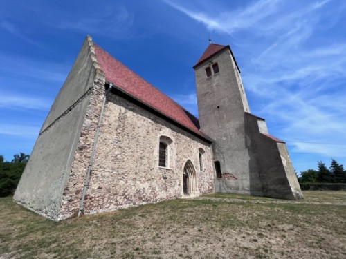 Kościół parafialny pod wezwaniem Narodzenia Najświętszej Marii Panny, pochodzi z drugiej połowy XIII w.; wielokrotnie rozbudowywany: prezbiterium – XV w., wieża – XVI w. Prosta, jednonawowa budowla z kamienia i cegły, przekryta wewnątrz sklepieniem krzyżowo-żebrowym i sieciowym, a zewnątrz dachem dwuspadowym. Surowa architektura przełamana portalem z XIII w. w ścianie południowej i wieżą przekrytą dachem czterospadowym. We wnętrzu wyróżnia się ołtarz wykonany w XVI w. przez Mistrza z Gościszowic, kamienna chrzcielnica z końca XVI w., obraz „Uwolnienie św. Piotra” z przełomu XVI i XVII w., a także płyty nagrobne z okresu gotyku i renesansu. Kościół otoczony jest kamiennym murem, w którym umieszczono piętrową bramę przykrytą dachem czterospadowym. Wewnątrz muru znajduje się też cmentarz