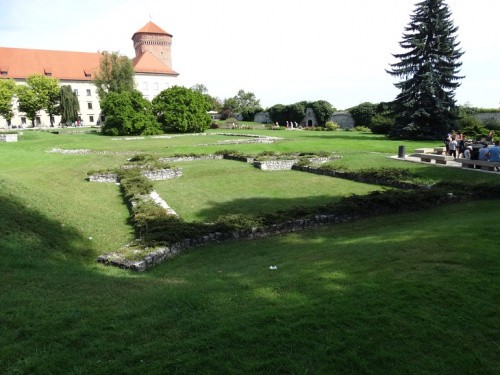 W obrębie fundamentów gotyckiego kościoła św. Jerzego na zewnętrznym dziedzińcu Wawelu odnaleziono pozostałości kościoła romańskiego. Obecnie na trawniku dziedzińca uczytelniono jedynie fazę gotycką, romańskich śladów brak...