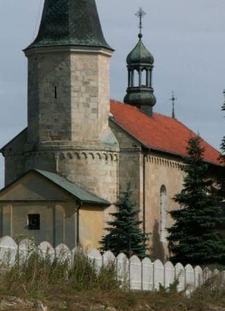 Kościół z ok. połowy XII wieku, jednonawowy,emporowy, pierwotnie dwuapsydowy, nad apsydą zachodnią wieża. W XV wieku apsyda wschodnia rozebrana, na jej miejscu powstało obecne prezbiterium.