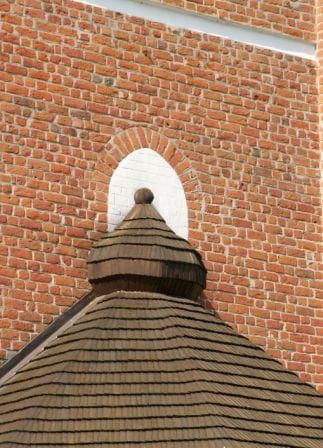 Bardzo ciekawa i mało znana budowla będąca przykładem prowincjonalnego i zapóźnionego warsztatu budowlanego. Powstał ok 1300r. Pierwotną część stanowi kwadratowe prezbiterium zbudowane z cegły w układzie wendyjskim (przeważnie), które jest jak najbardzIej romańskie. W ściane wschodniej zamurowane okno oraz lizeny, w południowej fryz ząbkowy ze skośnie ułożonych cegieł. (fot. kwiecień 2008)