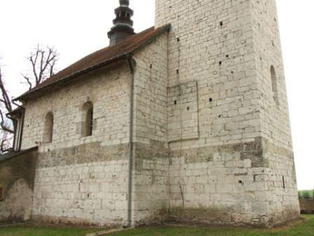 Kościół romański datowany na przełom XII/XIII wieku, zachowany w praktycznie niezmienionej formie. Położony na wzgórzu z wysoką kwadratową wieżą z licznymi okienkami strzelniczymi, stanowił doskonały punkt obronny.