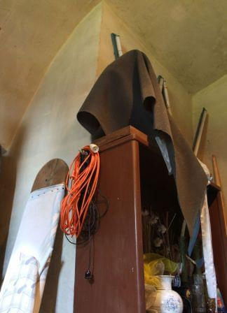 Okienko w nawie (obecnie na strychu) - charakterystyczne półkoliste pęknięcie na ścianie pomiędzy stacjami drogi krzyżowej obrazuje miejsce, gdzie się znajduje.