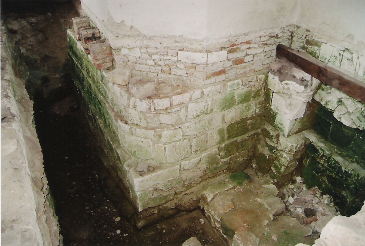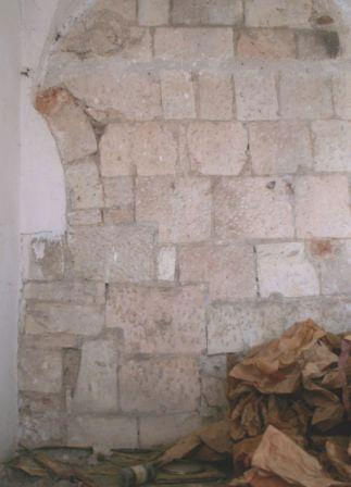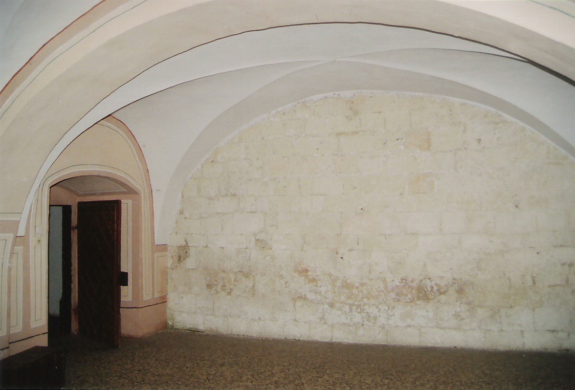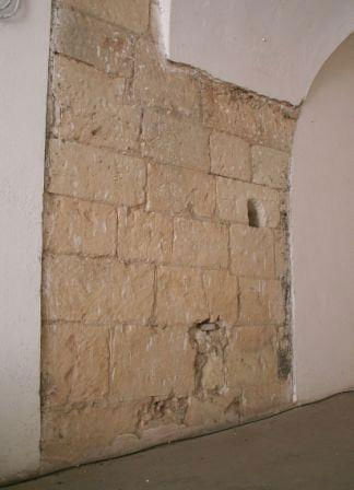Wschodnia ściana prezbiterium. Miejsce to nie jest widoczne na zewnątrz kościoła, ale jeśli poprosi się księdza, to pokaże pomieszczenie, w którym są te relikty.