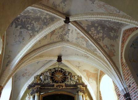 Zbudowany w 4 ćw. XIII wieku z cegły w układzie wendyjskim. Z tego założenia do naszych czasów dotrwało jedynie dwuprzęsłowe, sklepione krzyżowo-żebrowo prezbiterium pełniące rolę kaplicy w obecnym kościele. Z zewnątrz prezbiterium jest otynkowane, w środku natomiast widać oryginale mury i sklepienie. W ścianie północnej zarys portalu(?). W kościele znajduje się też XII-wieczna romańska chrzcielnica.