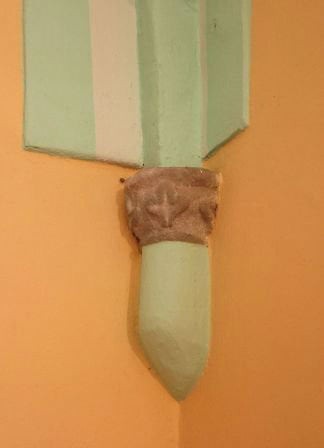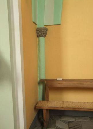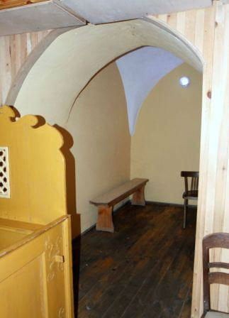Przy wejściu na emporę zachowane dwa portaliki, w przyziemiu sklepione pomieszczenie podemporowe.