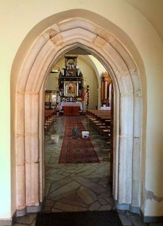 We wschodniej ścianie prezbiterium piękne szeroko rozglifione wąskie okienko, w płn ścianie nawy ślady po dwóch zamurowanych oknach. W ścianie zachodniej ostrołukowy portal z ciosów granitowych.