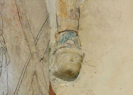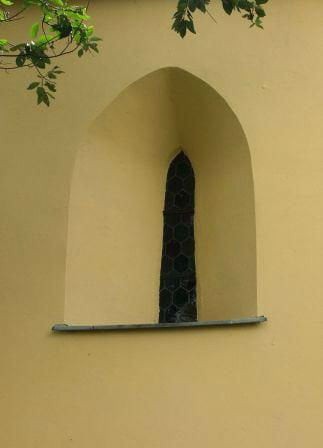 Zbudowany w 4 ćw. XIII wieku z kamienia łamanego składał się z prostokątnej nawy i prezbiterium. Do naszych czasów przetrwało oryginalne okno w północnej ścianie prezbiterium i sklepienie krzyżowo-żebrowe prezbiterium ze zniszczonymi służkami, z których zachowały się wysoko osadzone głowice w kształcie masek.