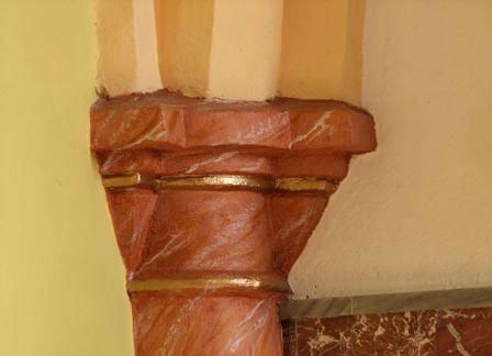 Wbrew logice i ten kościół był otwarty grubo po ostatniej mszy. W środku kolorowo i pstrokato. kamienne detale architektoniczne przykryte warstwą tynku, farby i jakiegoś kolorowego ustrojstwa imitującego marmur(?)(fot. wrzesień 2011).