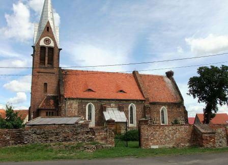 Zbudowany w 4 ćw. XIII wieku z cegły w układzie wendyjskim (prezbiterium) i gotyckim (nawa), a także kamienia w przyziemiu. Zachowane pierwotne okna, fryz ząbkowy w prezbiterium oraz sklepienie krzyżowo-żebrowe prezbiterium wspierające się niegdyś na narożnych służkach, z których do dziś pozostały relikty tylko jednej.