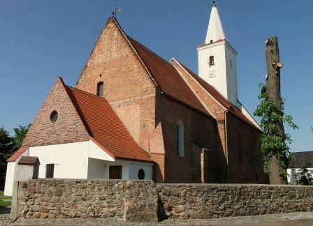 Zbudowany w 3 ćw. XIII wieku z cegły w układzie wendyjskim składał się z dwuprzęsłowego prezbiterium oraz nawy z wtopioną w nią wieżą zachodnią. W nawie empora z trzema sklepionymi pomieszczeniami podemporowymi.