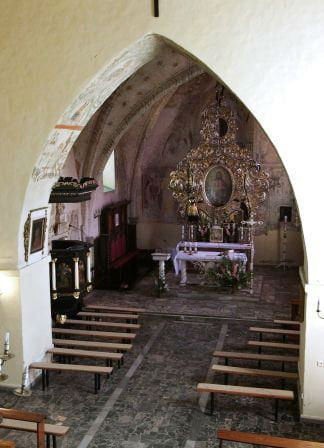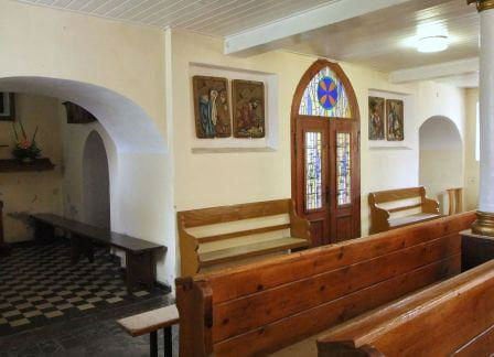 Z pierwotnego założenia zachowane 2 okna w ścianie północnej nawy, a także częściowo przekształcone bądź zamurowane okna w ścianie południowej nawy i północnej ścianie prezbiterium. We wschodniej ścianie prezbiterium częściowo zamurowane okno gotyckie z maswerkiem, widoczne od wewnątrz. W kościele zachowały się nadto dwa portale - zachodni i południowy do nawy, także portalik prowadzący na emporę z pomieszczenia podwieżowego oraz zamurowane przejście pomiędzy pomieszczeniami podemporowymi. Sklepienie prezbiterium krzyżowo-żebrowe wspiera się na nisko osadzonych geometrycznych wspornikach.
