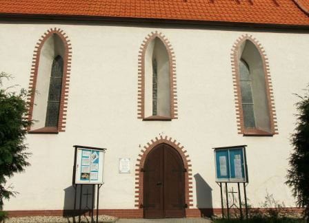 Jeden z ciekawszych przykładów architektury przejściowej. Zbudowany w 4 ćw. XIII wieku z kamienia łamanego składał się z prostokątnej nawy i węższego prezbiterium sklepionego krzyżowo-żebrowo. W XIV kościół rozbudowano z użyciem cegły w kierunku zachodnim (wyburzono wtedy pierwotną ścianę zachodnią), zbudowano szczyty i zakrystię.