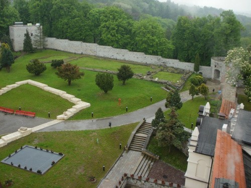 widok z wieży zamkowej - po lewej cerkiew, z tyłu palatium z rotundą