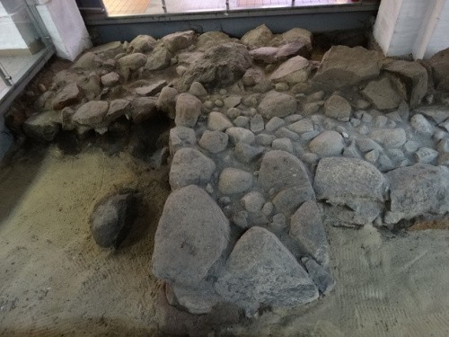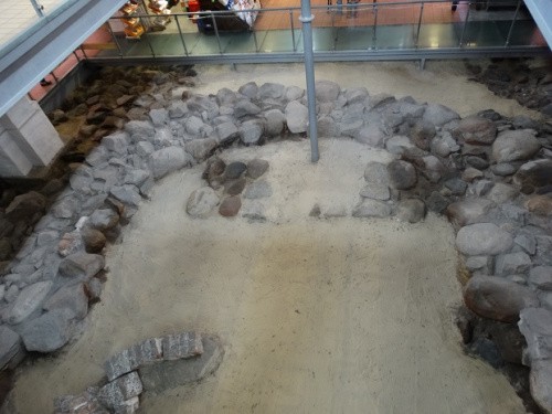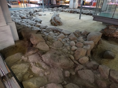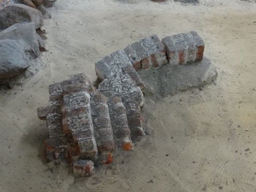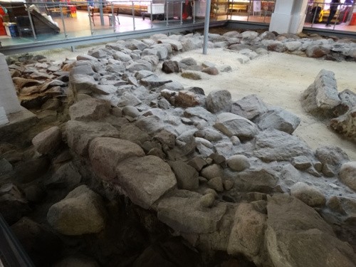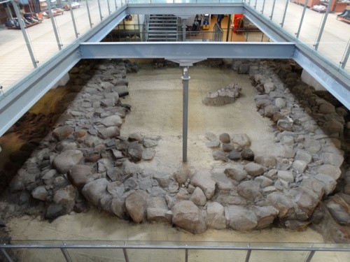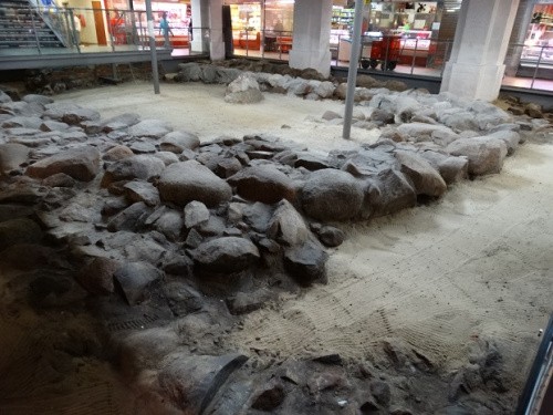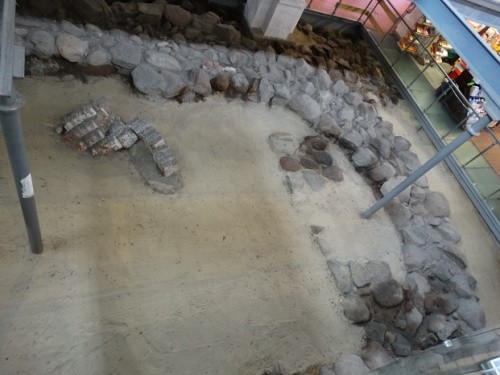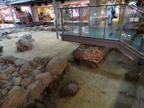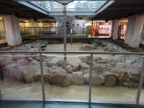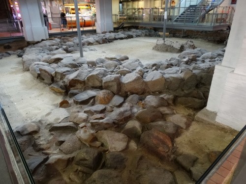 całość reliktów od strony zachodniego wejścia do Hali. Trzy poziomy chodników "obserwacyjnych"