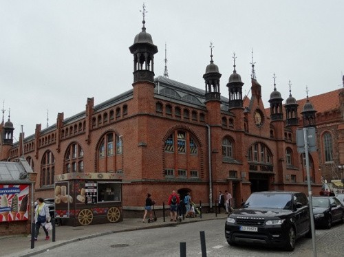 Hala Targowa zawierająca relikty kościoła - widok na zachodnie wejście (po prawej)