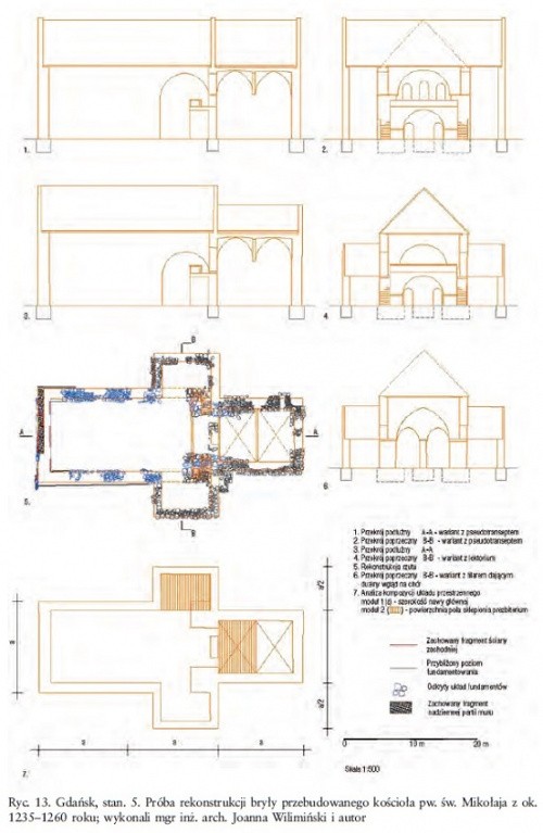 II faza kościoła - przebudowa w XIII w. przez dominikanów. Rysunek 13 z cytowanej pracy M. Szyszki 2009