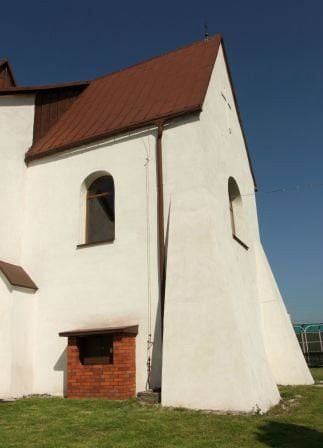 Najstarszą częścią świątyni jest prostokątne prezbiterium zbudowane z ciosów kamiennych, dawna zakrystia po stronie północnej z niewielkim okienkiem od wschodu i wschodnia partia nawy.