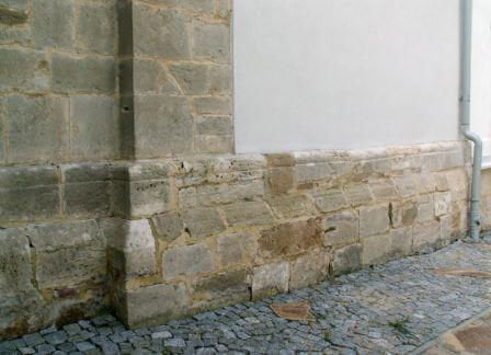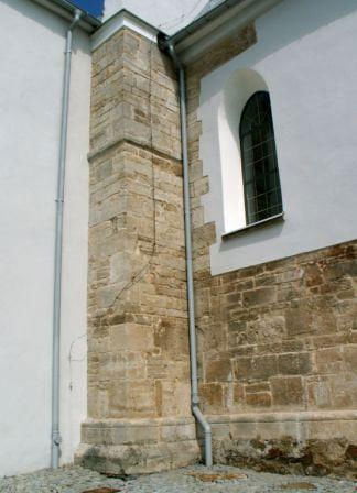 Występ muru w fasadzie zachodniej, który pozwala na postawienie hipotezy o istnieniu westwerku