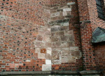 Romańska świątynia datowana jest na ok. 1120 rok. Nic o niej nie wiadomo. Zniszczona i zburzona w ok. poł. XIII wieku. Pozostały z niej kamienne ciosy wtórnie użyte do budowy świątyni wczesnogotyckiej i gotyckiej. Najciekawsza ściana romańska - choć prawdopodobnie też z wtórnie ułożonych kamieni - znajduje się za stallami w północnej ścianie prezbiterium i nie jest widoczna. Można kupić w katedrze broszurkę za 10 zł, w której jest zdjęcie tego muru.